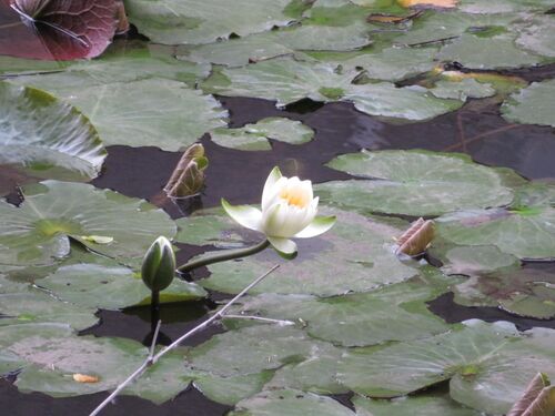 蓮の時期には早いとは思ったけれど、ひょうたん池に通りがかったときに白いものが見えていたような気がしたので、改めて向かってみると…、 しっかり咲いてました。手賀沼の古代種とは違うようで白いですが。 アジサイもいい感じです。